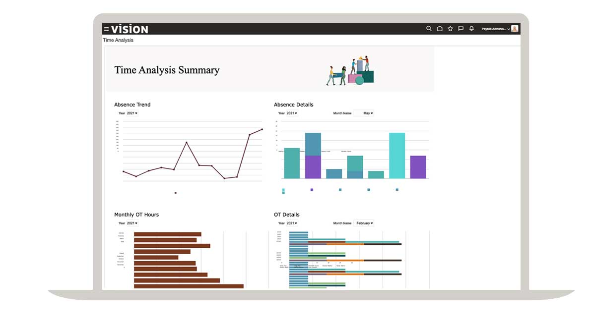 قم بتحقيق الانسجام مع استراتيجية الأعمال وتقليل مخاطر التوافق وانشر القوى العاملة بمزيد من التحكم عبر حل الموارد البشرية المتكامل تمامًا الذي يربط إدارة الوقت والعمل والإجازات بالرواتب والماليات وبيانات الموظفين.